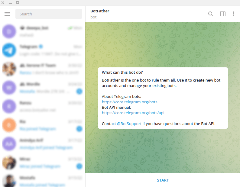 Y sin demora, enviará otro mensaje con muchas opciones. Ahora haz clic en la opción /newbot para crear un nuevo bot.