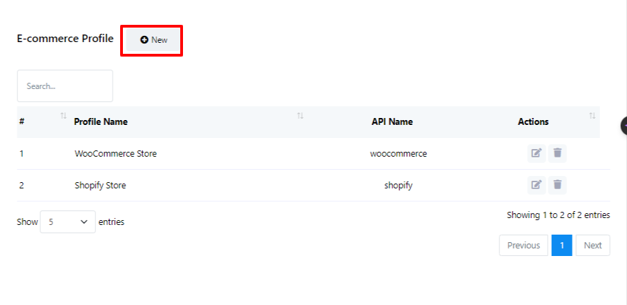 - Para configurar un nuevo perfil de proveedor de servicios de respuesta, haga clic en el botón "Nuevo" junto a Perfil de comercio electrónico.