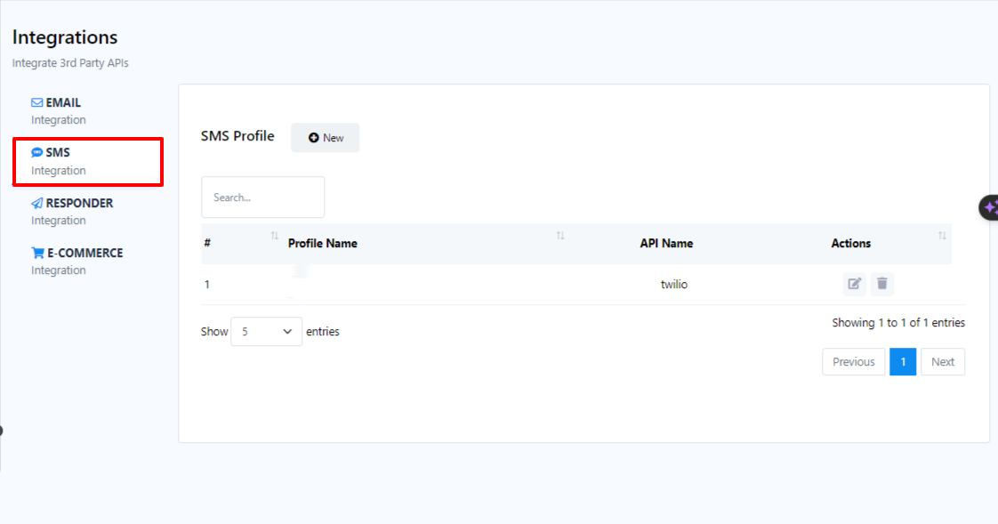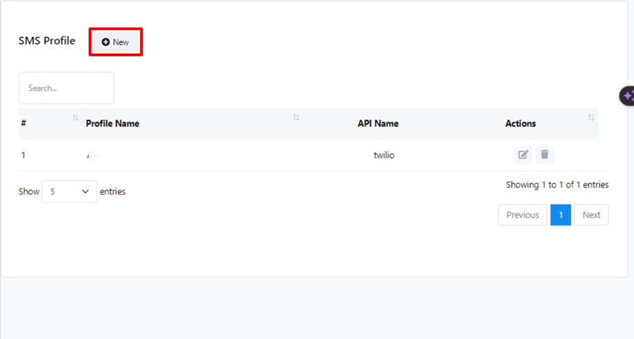 - Para configurar un nuevo perfil de proveedor de servicios SMS, haga clic en el botón "Nuevo" junto a Perfil SMS.
