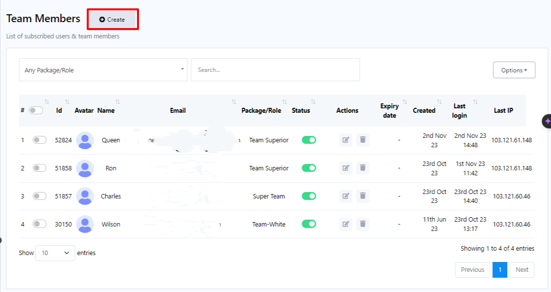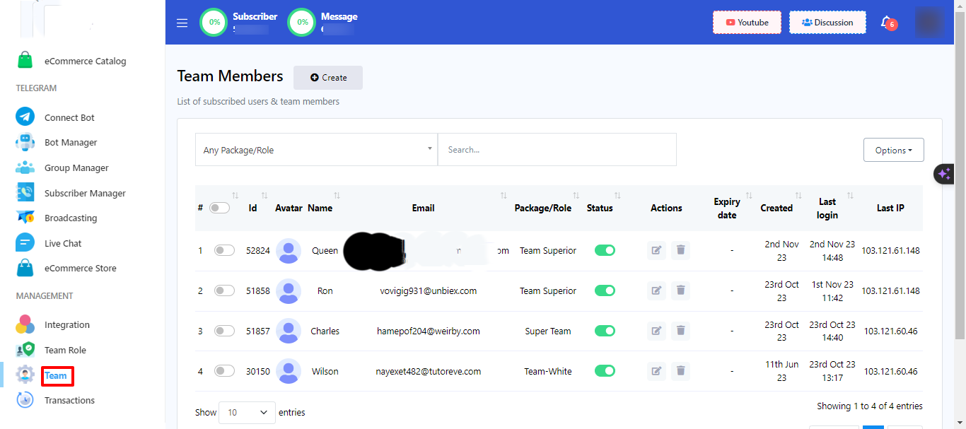 En nuestra plataforma, un miembro del equipo es más que un simple usuario. Son personas especializadas con acceso a diversas funciones, como el chat en vivo y la gestión de suscriptores. Este rol es especialmente útil cuando se tiene una gran cantidad de usuarios registrados y se necesita ayuda con la gestión de sus datos u otras tareas relacionadas con ellos.