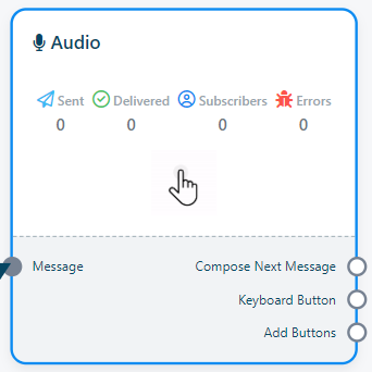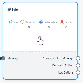- Para incluir este componente, simplemente arrastre el cursor desde el conector del botón del teclado de los componentes de Texto, Imagen, Audio, Vídeo o Archivo y suéltelo en el editor. Esta acción añadirá inmediatamente un componente de Teclado conectado al componente principal.