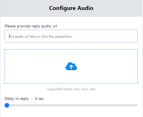 Ingrese su mensaje de respuesta en el campo "Por favor, proporcione su mensaje de respuesta". Utilice la opción "Retraso en la respuesta" si necesita retrasar la respuesta al mensaje del cliente.