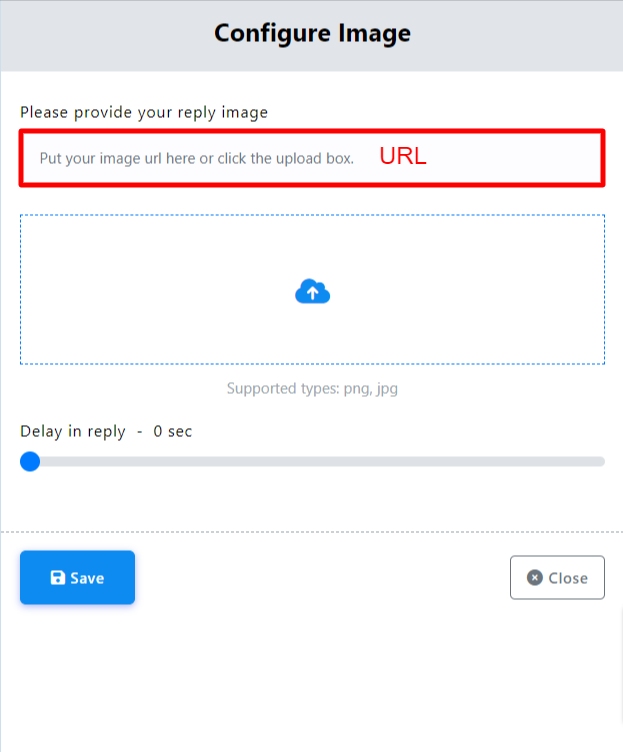 - Establezca la imagen, puede utilizar una URL de la imagen o simplemente cargar una imagen.