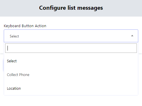 - A continuación, haga clic en el campo dentro del componente Teclado. Se abrirá un menú desplegable con opciones para recopilar números de teléfono o información de ubicación.