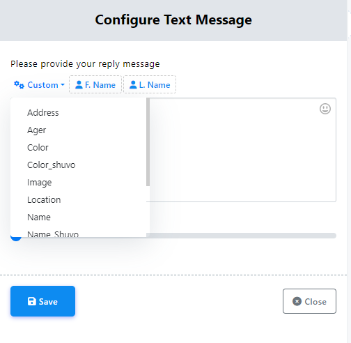 También puedes insertar variables personalizadas en tu mensaje de respuesta. Haz clic en el botón "Personalizar", selecciona una variable del menú desplegable y se reemplazará con el valor real antes de enviar el mensaje.